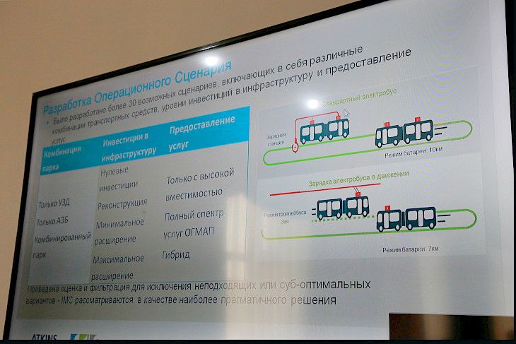 ЕБРРдин Евразия инфраструктурасы департаментинин өкүлү Нургүл Кудранова «Atkins» компаниясынын кызматкерлери жүргүзгөн ички жана тышкы изилдөөдөн соң 19 электр автобустарын жана 37 аккумулятордук троллейбустарды сатып алуу аркылуу долбоорду ишке ашыруу сунушун берди.