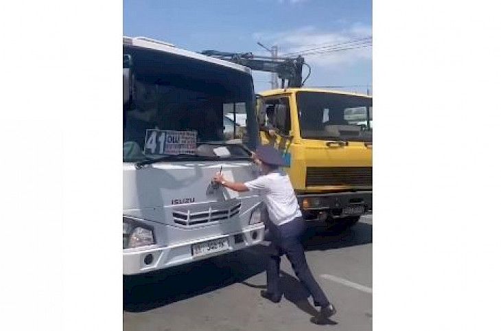 Бишкекте Киев жана Бейшеналиева көчөлөрүнүн кесилишинен №41 автобустун айдоочусу милиционерди сүзүп кете жаздады. Бул тууралуу Милициянын кайгуул кызматынын басма сөз кызматынан билдиришти.
