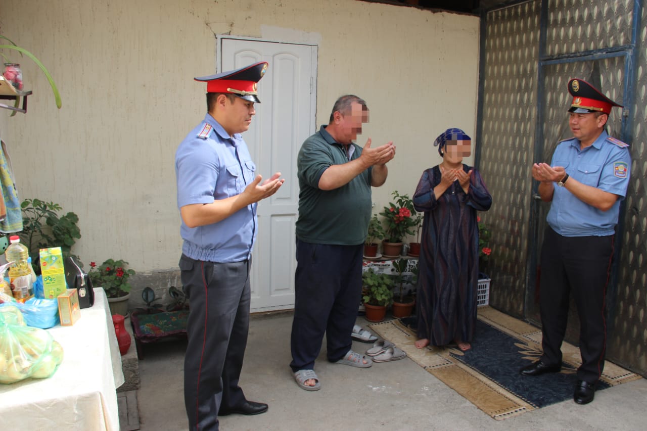 Ош шаардык ички иштер башкармалыгынын коомдук көчмө кабылдамалары жарандар менен алар жашаган аймактарда жолугушууларды уюштуруп, зарыл учурда арыздарын, сунуш-пикирлерин алууну улантышууда. Ушундай иш-чара учурунда социалдык жактан оор шартта жашаган 2 үй-бүлө маалым болгон.Бүгүн ошол эки үй-бүлөдөн Ош шаардык ички иштер башкармалыгынын начальнигинин орун басары милициянын полковниги Акылбек Бекишев кабар алды. Бул бүлөлөрдүн ал-абалы менен таанышып, милиция кызматкерлеринин атынан жардам көрсөттү. «Милициянын көчмө кабылдамасы аркылуу Сиздердин бүгүнкү күндөгү социалдык абалыӊыздар тууралуу маалымат алдык. Жардам көрсөтүүнү чечтик. Буюрса мындан ары дагы колдон келген жардамыбызды аябайбыз. Ар дайым ден-соолукта, амандыкта болуӊуздар»,-деди милициянын полковниги Акылбек Бекишев. Жардам алган жарандарыбыз дагы жардам колун сунган милиция кызматкерлерине ыраазычылыктарын айтышып, баталарын беришти.Бул үй-бүлөлөр тууралуу маалыматтар атайын социалдык жактан коргоо мекемелерине жөнөтүлдү. Ош шаардык ички иштер башкармалыгы ушул сыяктуу муктаж адамдарга камкордук көрсөтүүнү уланта бермекчи.Ош шаарында учурда милициянын 4 коомдук кабылдамасы иш жүргүзүп келет. Ушул жылдын беш ай аралыгында 137 ирет аймактарга чыгышып, 299 жаранды кабыл алышкан. 211 жаранга юридикалык жардамдар көрсөтүлгөн.