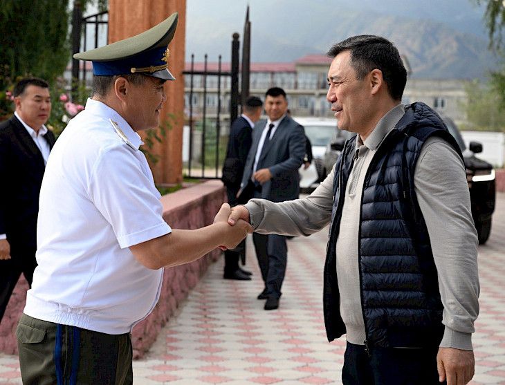 “Мамлекеттин кызыкчылыгына убактысын, ден соолугун, жаштыгын арнаган эр-азаматтарыбызды мамлекет көңүл сыртында калтырбайт. Улут коопсуздугу үчүн күрөшкөн мындай эр-азаматтарыбыздын балдарына тиешелүү кам көрсөк, алар дагы улут камын ойлогон мекенчил уул-кыздардан болуп чоңоюшат деп ишенем”, — деп Садыр Жапаров баса белгиледи жана дагы бир жолу жакшы саамалык менен чогулгандарды куттуктап өттү.