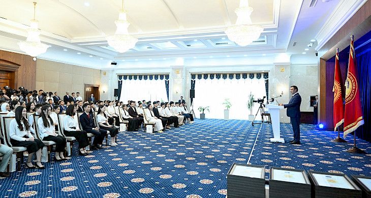«Силердин алдыңарда азыркыга караганда көбүрөөк жоопкерчилик жана сыноолор турат. Силер каалаган университетке кирип, тандаган кесиптин адиси болуу үчүн талыкпай эмгектенишиңер керек. Ошондо гана силердин асыл максатыңар — Мекенге пайдалуу кызмат кылуу үчүн татыктуу адис болуу кыялыңар ишке ашат», — деп Садыр Жапаров өлкөнүн мыкты абитуриенттерине кайрылды.