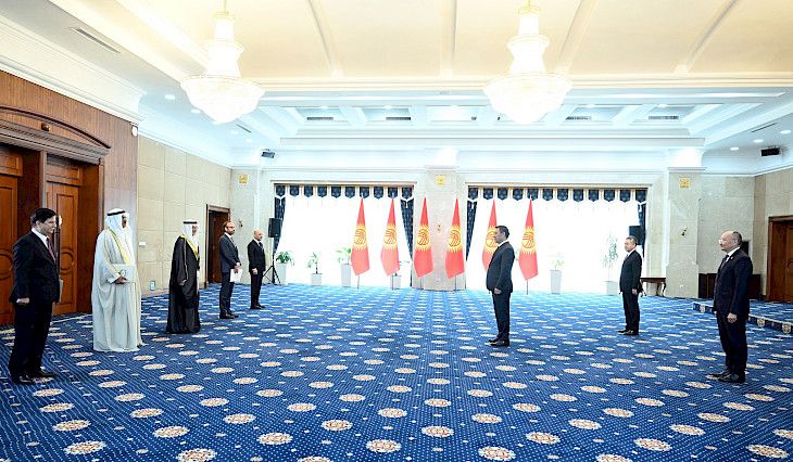 Президент Садыр Жапаров бүгүн резиденциялары үчүнчү өлкөлөрдө жайгашкан Палестинанын, Кувейт Мамлекетинин, Бахрейн Падышалыгынын, Дания Королдугунун жана Грузиянын Атайын жана Ыйгарым укуктуу элчилеринен ишеним грамоталарын кабыл алды. Ишеним грамоталарын Палестинанын Джавад Мохаммад Авад, Кувейт Мамлекетинин Омар Ахмед Мухаммед Мурад Аль-Кандари, Бахрейн Падышалыгынын Мохамед Гассан Мохамед Аднан Шайхо, Дания Королдугунун Якоб Хеннингсен, Грузиянын Николоз Лалиашвили элчилери тапшырды. [&hellip