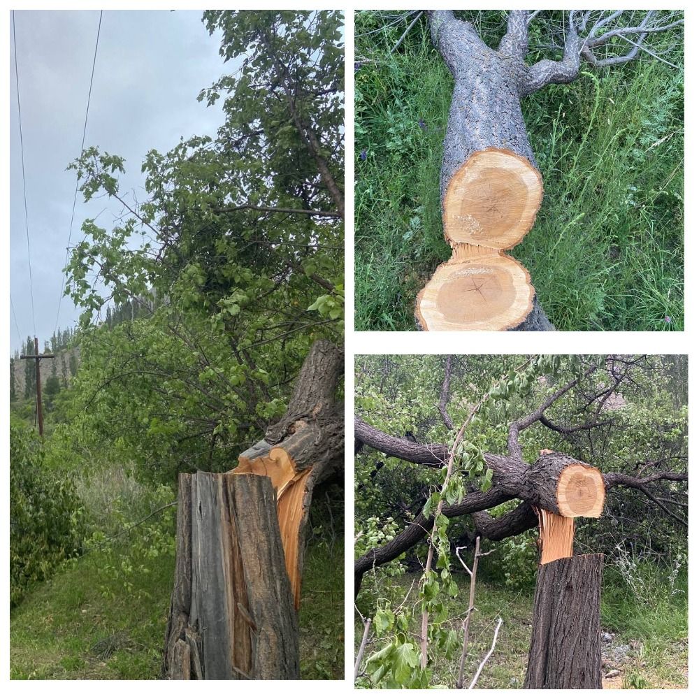 Баткен облусунун Кан айылында электр зымдарына тоскоолдук жаратат деген жүйө менен өрүк бактары массалык түрдө кыйылды.