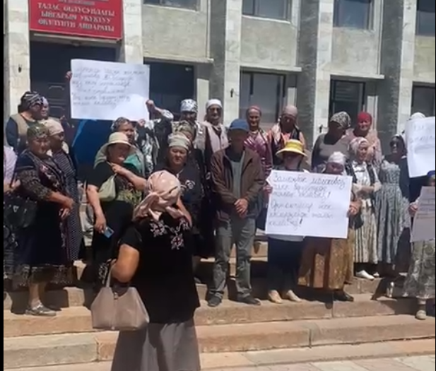 Талас облусунун президенттин Талас облусундагы ыйгарым укуктуу өкүлчүлүктүн имаратынын алдына аталган облустун тургундары чогулушуп, нааразычылыгын билдиришти.
