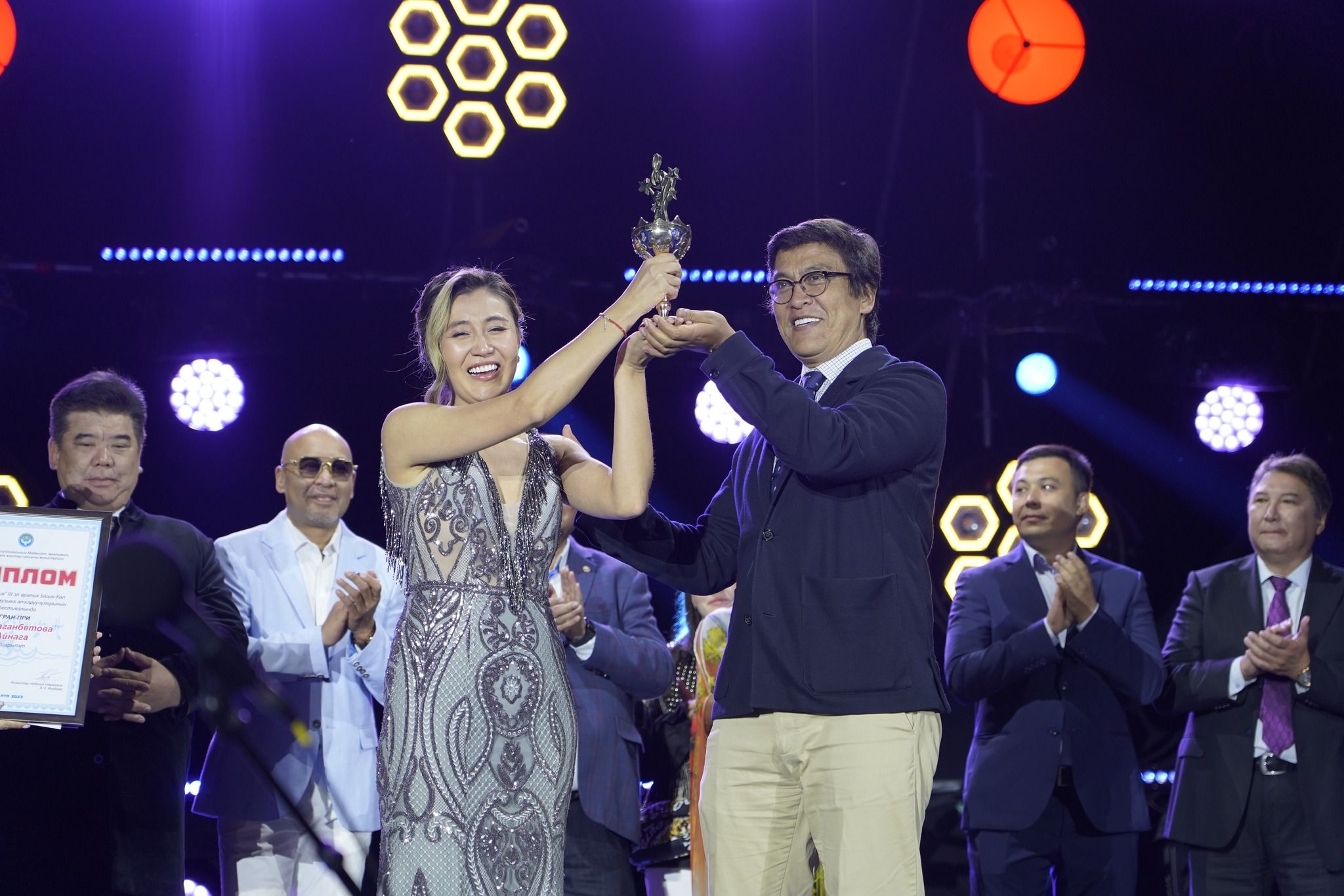 Айна Калмаганбетова баш байге катары 5 миң АКШ доллар акчалай сыйлык, “Мейкин Азия” фестивалынын атайын статуэткасы жана диплом менен сыйланды.