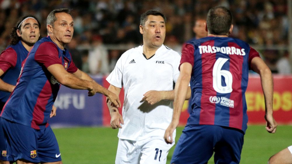 — Жок, чарчаган жокмун. Эки таймды тең аягына чейин ойносом деле чарчамак эмесмин. Чыгып кеткенимдин себеби мени Пуйолго кайтартып коюшуптур. Оюнду байкасаңар жанымдан чыкпай койду. Анысы аз келгенсип чабуулга өтөөрдө билектен бекем кармап алды. «Э-э-й жигит, кармабай ойно» деп күлүп кайрылсам, «sorry-sorry» (кечиресиз) деп күлүп коёт. Кайра эле кармап алат. Кыскасы Барселонанын балдары жолдоштук беттешүүдө эмес, кадимки чемпионаттарда ойноп жаткандай аябай чоң жоопкерчилик менен ойноп жатышты. Анан элестетиңиз футболдун легендасы болсо, менден 10 жаш кичүү жаш бала болсо мени ойнотмок беле? Ошол үчүн менин ордума жаш балдар кирсин, бир аз да болсо командага күч кошот деген ой менен эле чыгып кеттим да, жаш балдарды киргиздик. Бирок баары бир Барселона деген Барселона да. 3:0 менен утулдук. Дагы жакшы мен тилеп жаттым эле, баскетболдук эсеп менен жеңилбесек экен деп.