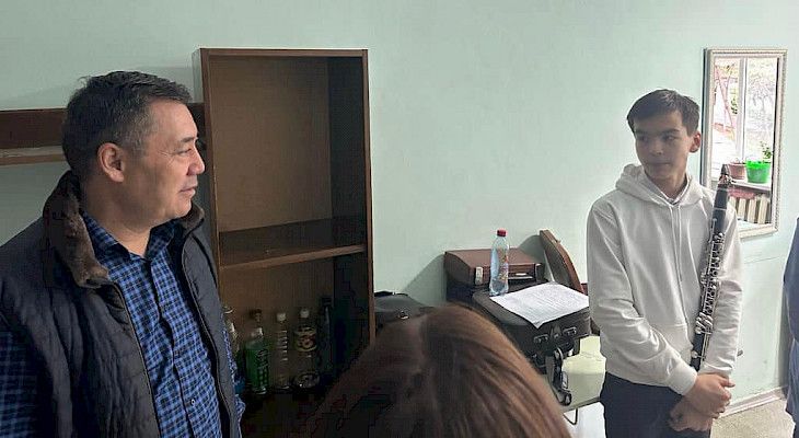 Анын айтуусуна караганда, мамлекет башчысы М. Абдраев атындагы республикалык атайын орто музыкалык мектеп-интернатына жана М. Күрөңкеев атындагы Кыргыз Мамлекеттик музыкалык окуу жайына барды.
