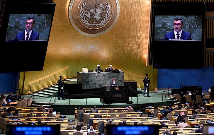 Президент Садыр Жапаров кечээ, 19-сентябрда Нью-Йорк шаарында (АКШ) БУУнун Башкы Ассамблеясынын 78-сессиясынын Жалпы дебаттарында сөз сүйлөдү.