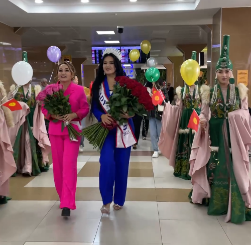 . Аны «Манас» Эл аралык аэропортунан ырчы гульзинат Суранчиева тосуп алганын видеодон көрүүгө болот. Буга чейин ырчы айым «Ура! Жеңиш биздики. Аллахымдын каалоосу, элимдин батасы менен “LADY WORLD” сынагынан баш байгени утуп “Дүйнө айымы” аталдым», — деп жазган.