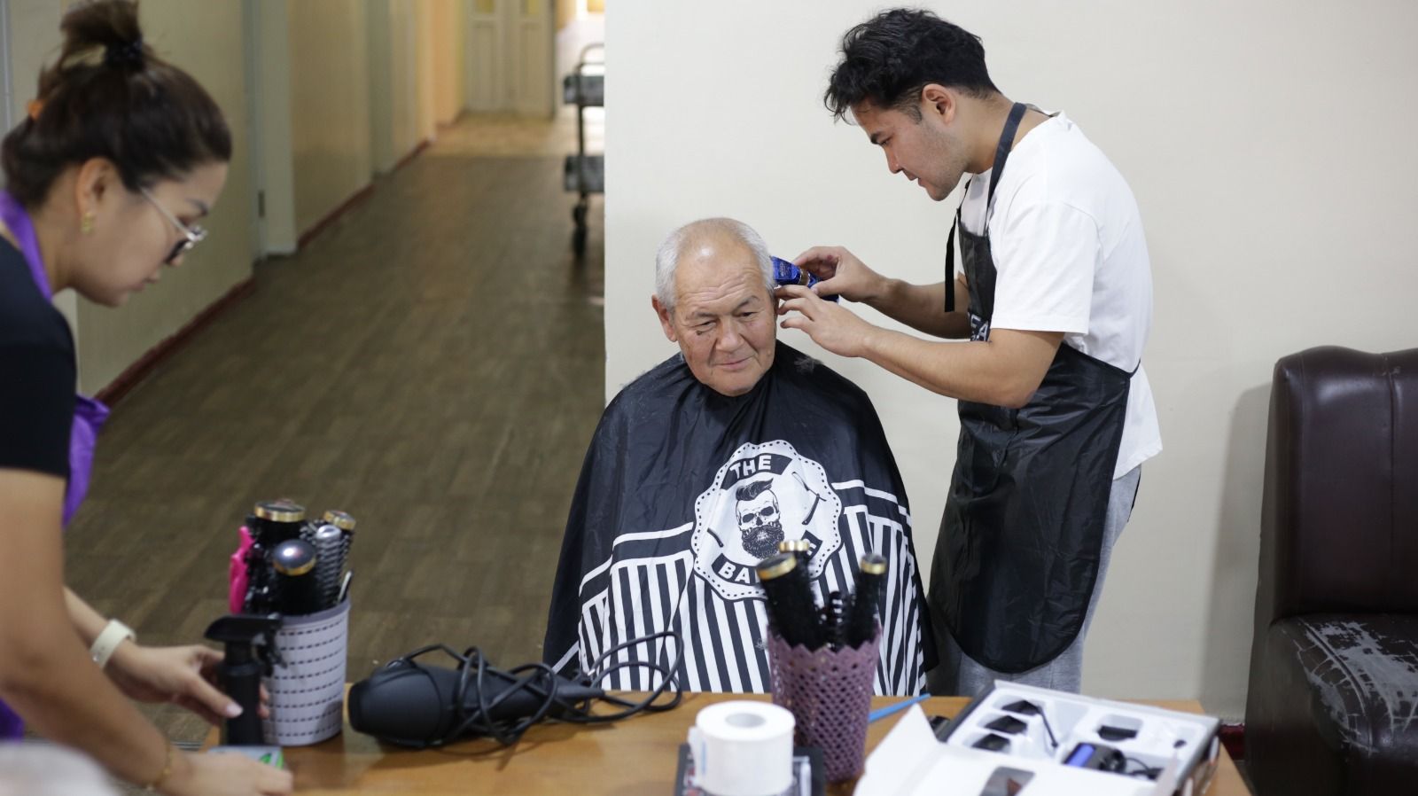 «Мухабат» сулуулук салонунун чеберлери чоң ата, чоң энелерге модалуу чач жасалгаларын жасап, 35ке жакын адам сулуулук кызматын пайдаланышкан.