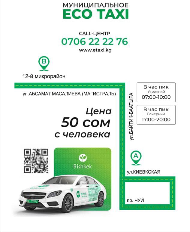 2023-жылдын 1-октябрында жаңы экотакси кызматы — Муниципалдык ECO TAXI иштей баштайт. Бишкек мэриясы билдиргендей, бул электр энергиясы менен иштеген экологиялык жактан таза жана үнөмдүү транспорт түрү. Биринчи этапта Муниципалдык ECO TAXIнин 10 электр унаасы иштей баштайт. Маршрут схемасы:Киев / Ю.Абдрахманов көчөсүнүн кесилишинен 12-кичи районуна чейин белгиленген сары тилке боюнча саат 07:00-10:00 (күндүзгү) жана 17:00-20:00 (кечки). […]