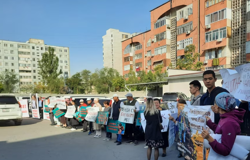 Мунун алдында райондук соттун алдында Кемпир-Абад ишине байланыштуу камалгандардын жакындары, туугандары сот процессинин ачык өтүшүн талап кылган акцияга чыккан.