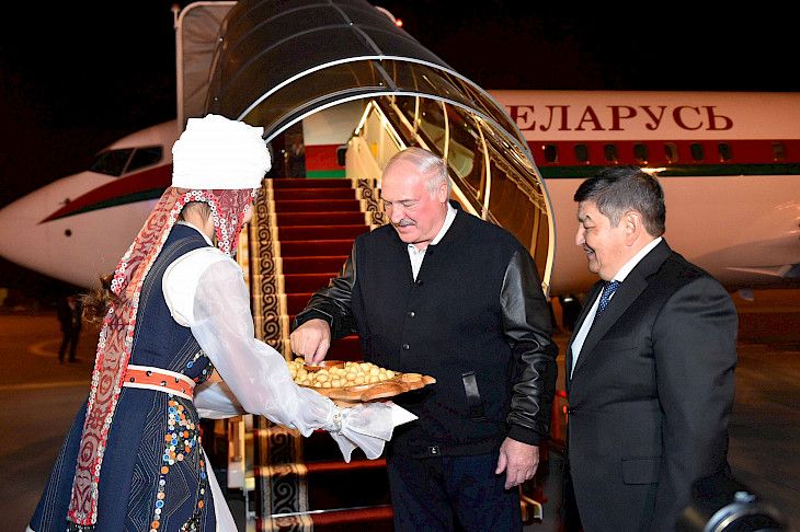 Беларусь президенти Александр Лукашенко Кыргызстанга келди. Бул тууралуу министрлер кабинетинен билдиришти. “Манас” эл аралык аэропортунан Беларусь президентин КР министрлер кабинетинин төрагасы Акылбек Жапаров тосуп алды. Сапардын алкагында президент Александр Лукашенко үстүбүздөгү жылдын 13-октябрында Бишкек шаарында өтө турган Көз карандысыз Мамлекеттер Шериктештигине (КМШ) мүчө-мамлекеттеринин башчыларынын кеңешинин жыйынына катышат. Быйыл Кыргызстан КМШга төрагалык кылууда.