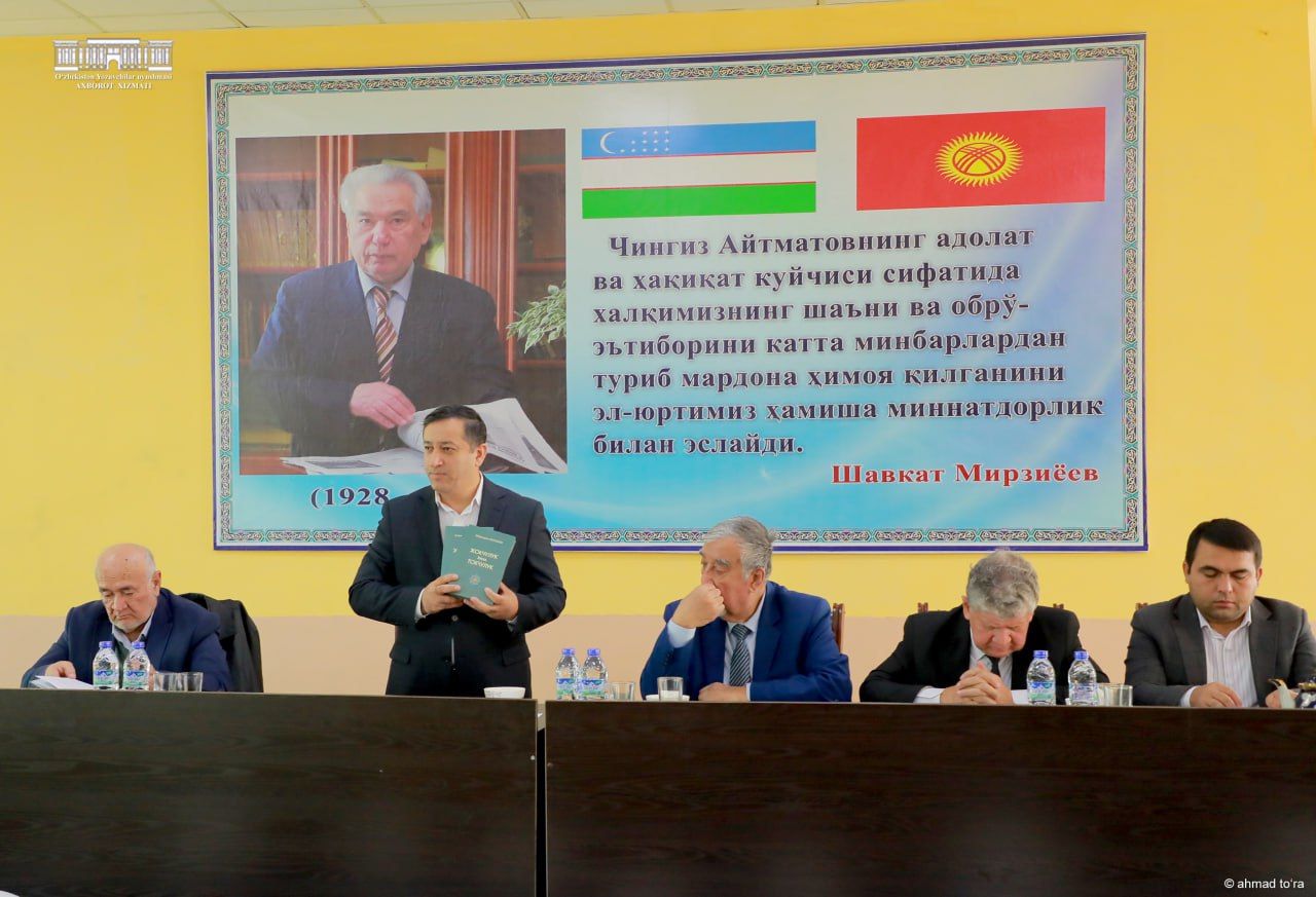 Өзбекстан Жазуучулар уюму төрагасынын орунбасары Гайрат Мажиттин айтымында, президент Шавкат Мирзиёевдин 2018-жылдын 2-апрелиндеги “Улуу жазуучу жана коомдук ишмер Чыңгыз Айтматовдун туулган күнүнүн 90 жылдыгын кеңири белгилөө жөнүндө” токтому улуу жаратуучуга болгон бийик урматтын символу катары боордош кыргыз эли менен тыгыз кошуналык жана достук мамиледе болуу, адабият, маданият тармагындагы кызматташтыкты кеңейтүүдө мааниге ээ болууда.