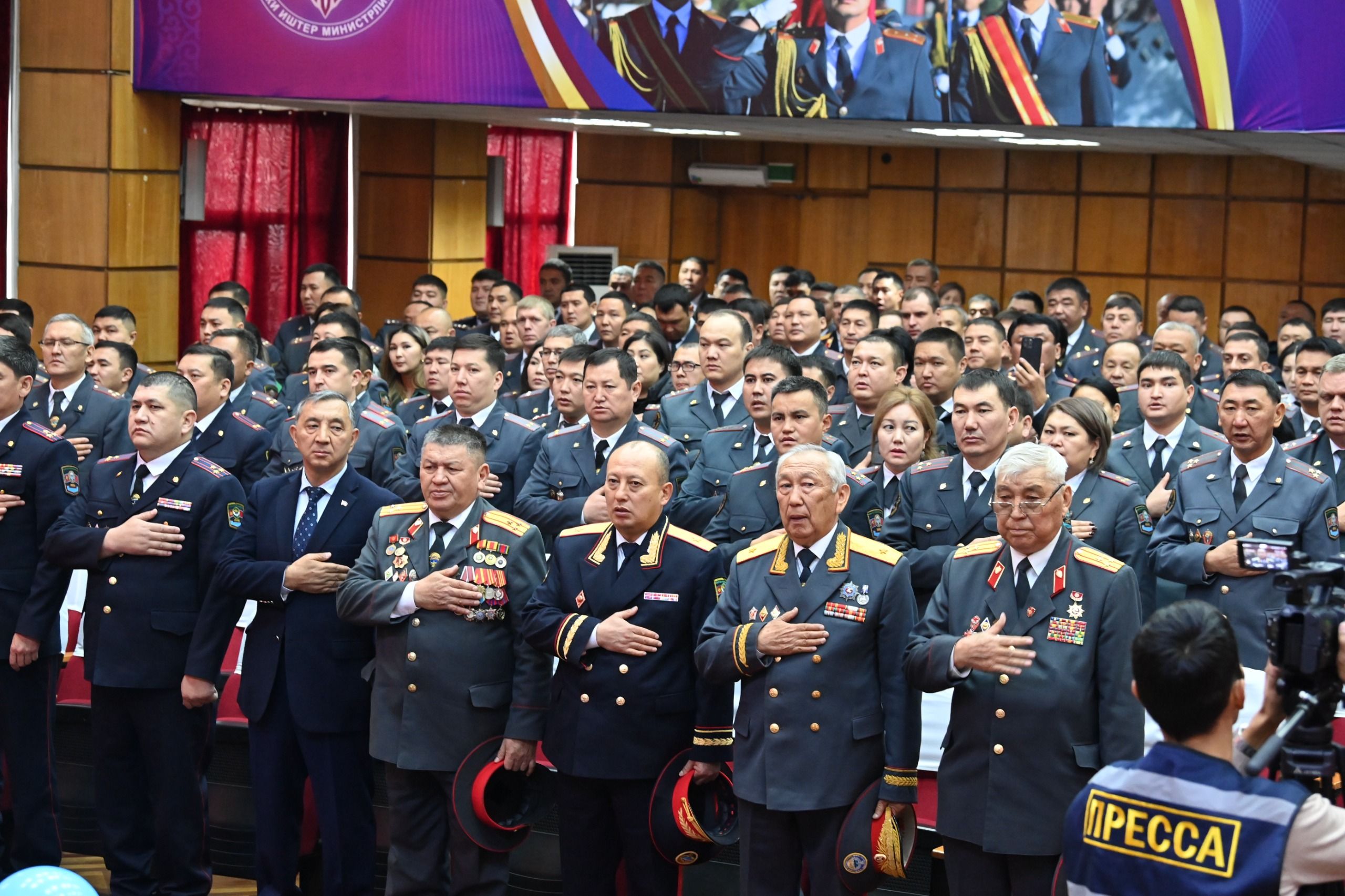 Бүгүн, ички иштер министрлигинде салтанаттуу иш-чара болуп, ага ички иштер министри милициянын генерал-лейтенанты Улан Ниязбеков, анын орун басарлары, ИИМдин Генералдар кеңешинин төрагасы милициянын генерал-майору Садырбек Дубанаев, ИИМдин Ардагерлер кеңешинин төрагасы милициянын отставкадагы полковниги Султанбек Жоошбаев, ошондой эле ардагерлер жана ИИМдин өздүк курамы катышты.