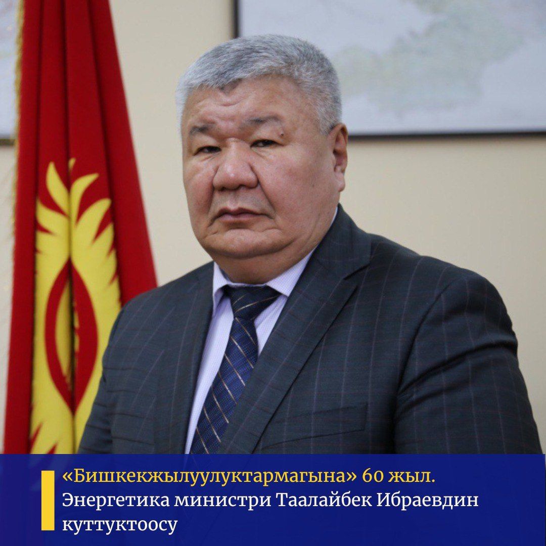 Энергетика министри Таалайбек Ибраев «Бишкекжылуулук тармагынын» 60 жылдыгы менен куттуктады:«Урматтуу «Бишкекжылуулуктармагы» филиалынын жалпы жамааты жанаардактуу тармактын ардагерлери!Сиздерди бүгүнкү «Электр станциялары» ААКтын филиалы«Бишкекжылуулуктармагынын» 60 жылдык маарекеси менен чын дилимденкуттуктайм!Алтымыш жыл аралыгында жылытуу системасын өнүктүрүү жолундакөптөгөн жумуштар аткарылып, ардагерлердин, кызматкерлердин таза, акниет эмгеги менен ушу күнгө жетип турабыз. Ишкан