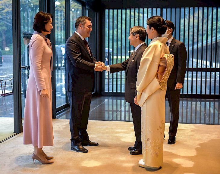 Президент Садыр Жапаров бүгүн Токио шаарынын борбордук бөлүгүндөгү Император сарайына Япониянын Императору жана Императрицасы менен жолугушууга келди.