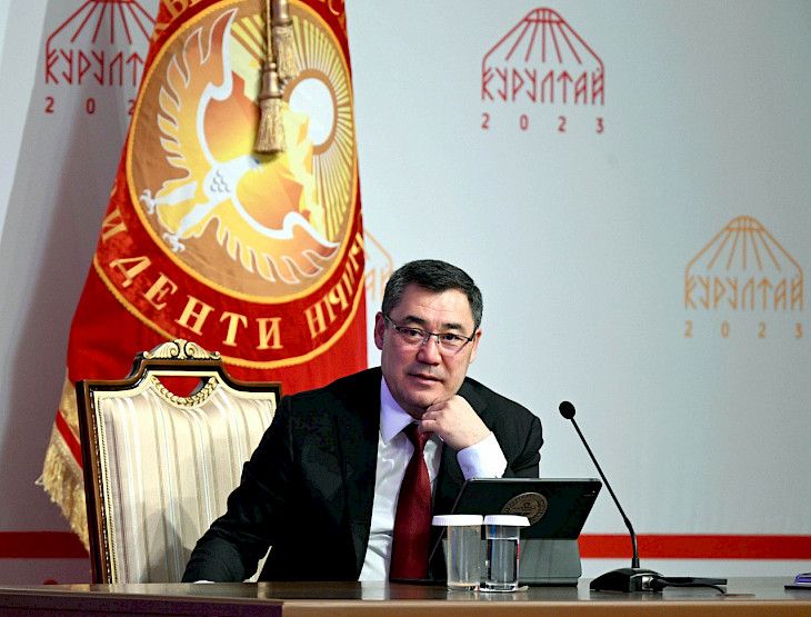Президент Садыр Жапаров экинчи Элдик курултайдын делегаттарынын суроолоруна жооп берип жатып, тууну өзгөртүү идеясы төрага Нурланбек Шакиевге эмес, ага таандык экенин айтты.