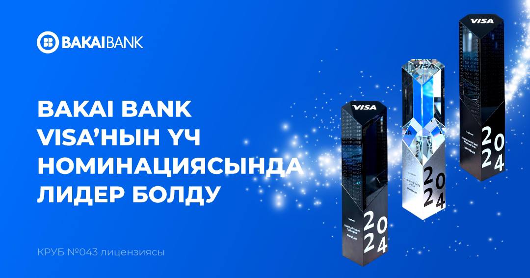 Санарип төлөмдөр тармагындагы дүйнөлүк лидер Visa компаниясы 2024-жылдын жыйынтыгын чыгарып, Кыргызстандагы банк индустриясынын эң мыкты өкүлдөрүн сыйлады. “Бакай Банк” ААКы бир эмес үч сыйлыкты жеңип, эң негизги жеңүүчүлөрдүн бири болуп калды: 1. Атайын сыйлык: Жеке процессинг борборун (In-house Processing Launch) ийгиликтүү ишке киргизүү2. Visa премиалдык карталарын чыгаруу боюнча лидер ( Best Premium Cards Issuer)3. Трансчек аралык операцияларга уруксат берүүнүн мыкты көрсөткүчү (Cross Border Best Approval Rate)