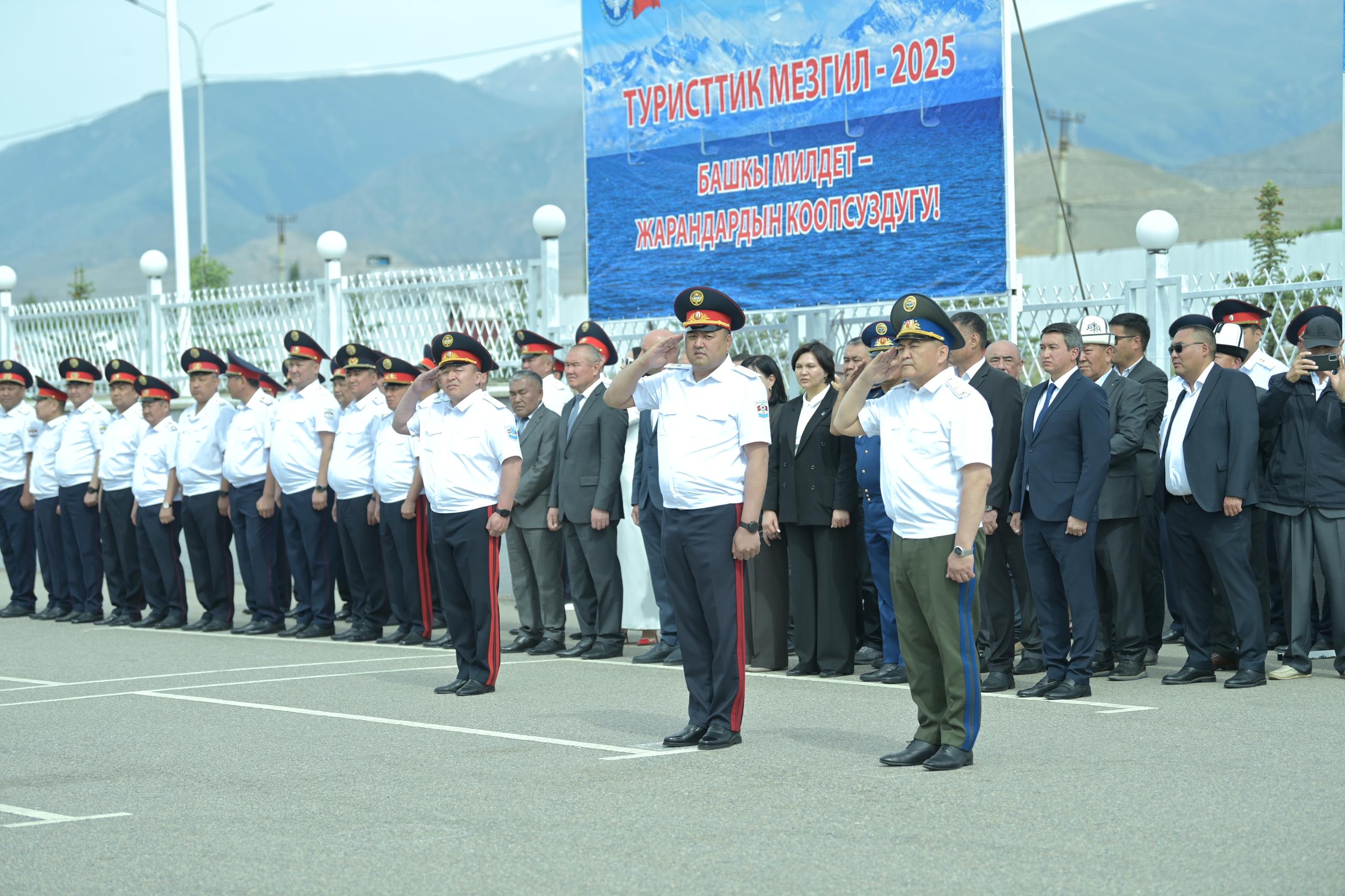 “Бардык туристтик аймактарга Ички иштер министрлигинен баштап, жер-жердеги шаардык, облустук, райондук ички иштер органдарынын жооптуу жетекчи курамдагы кызматкерлер бөлүнгөн. Аны менен бирге, кылмыштуулукту жана эл арасында резонанс жараткан фактыларды болтурбай, укук бузууларга бөгөт коюу ишмердигин күчөтүлгөн тартипте алып барууну уланта беребиз демекчимин.