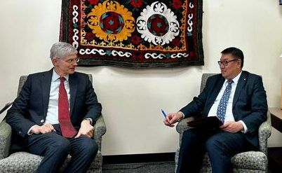 16-июнда Кыргызстандын элчиси Айбек Молдогазиев АКШнын Мамлекеттик катчысынын Борбордук жана Түштүк Азия боюнча жардамчысынын орун басары Джон Поммершайм менен жолукту.