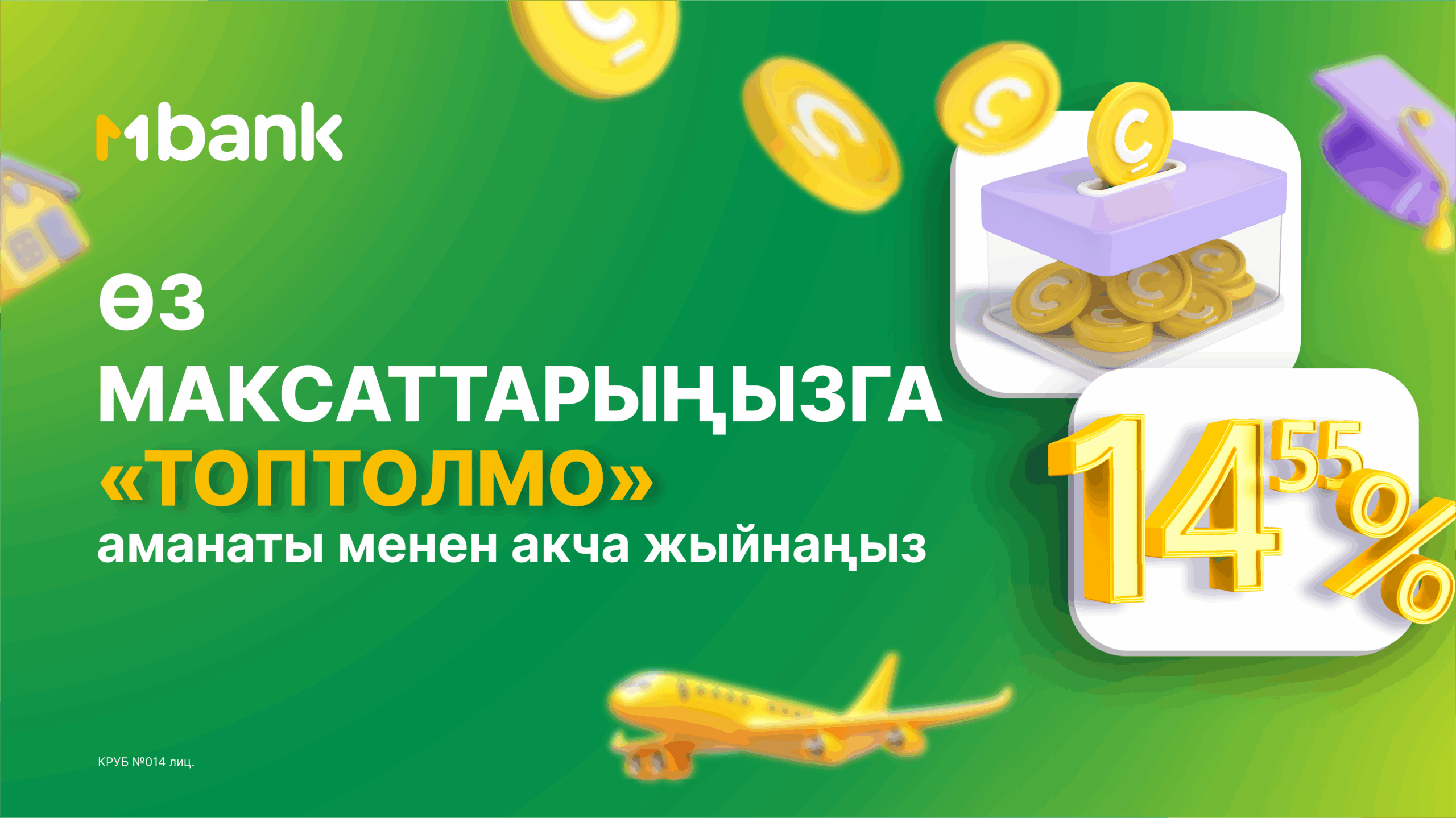 MBANK’тын топтолмо аманаты — максаттарыңызга жетүүнүн ишенимдүү жолу. Сом менен жылдык 14,55% жогорку пайыз, каалаган учурда толуктоо жана каржылык тартип: сиз чогултасыз — коротуусуз. Бул чоң сатып алуулардан тартып, финансылык коопсуздукка чейин ар кандай максаттар үчүн акча чогултууну каалагандарга идеалдуу чечим. Сиздин акчаңыз иштейт — сиз болсо келечекти пландайсыз.