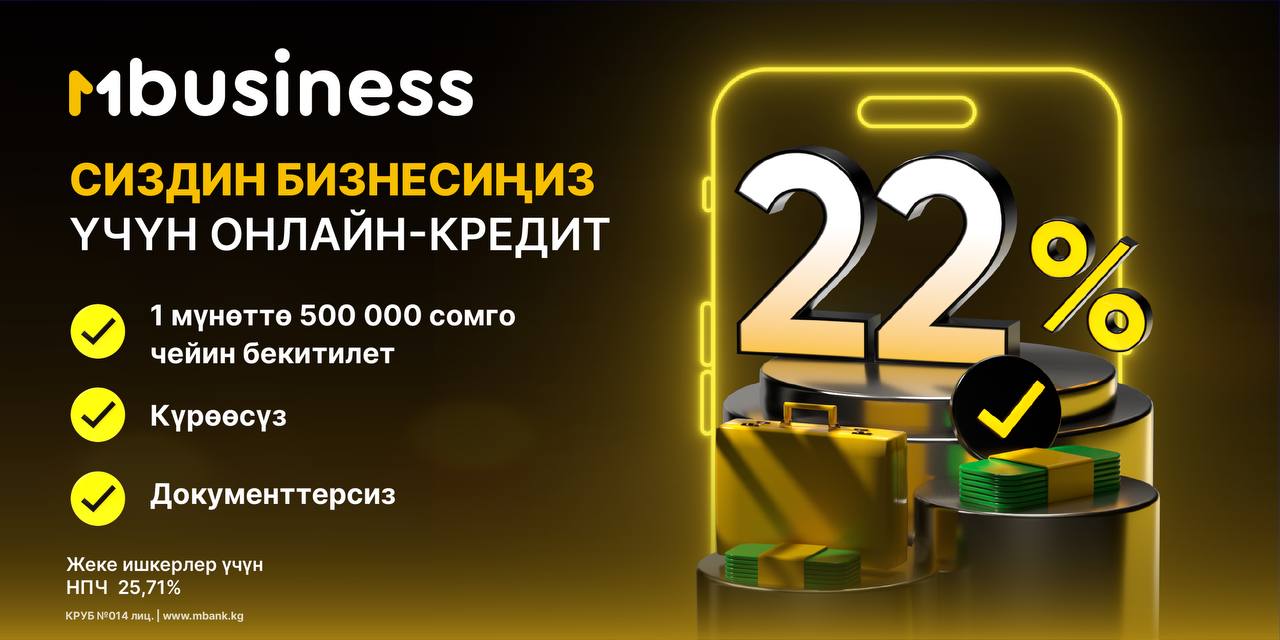 Сиздин бизнес — колдоого татыйт! Бул онлайн кредит — жөн гана акча эмес. Ал сиздин ишенимдүү өнөктөшүңүз. Биз сиздин салымыңызды жогору баалап, өнүгүүңүзгө жардам берүүгө даярбыз.Ишти чоңойтууга даярсызбы? Өтүнмөнү азыр эле бериңиз!MBANK – Биринчи санарип!
