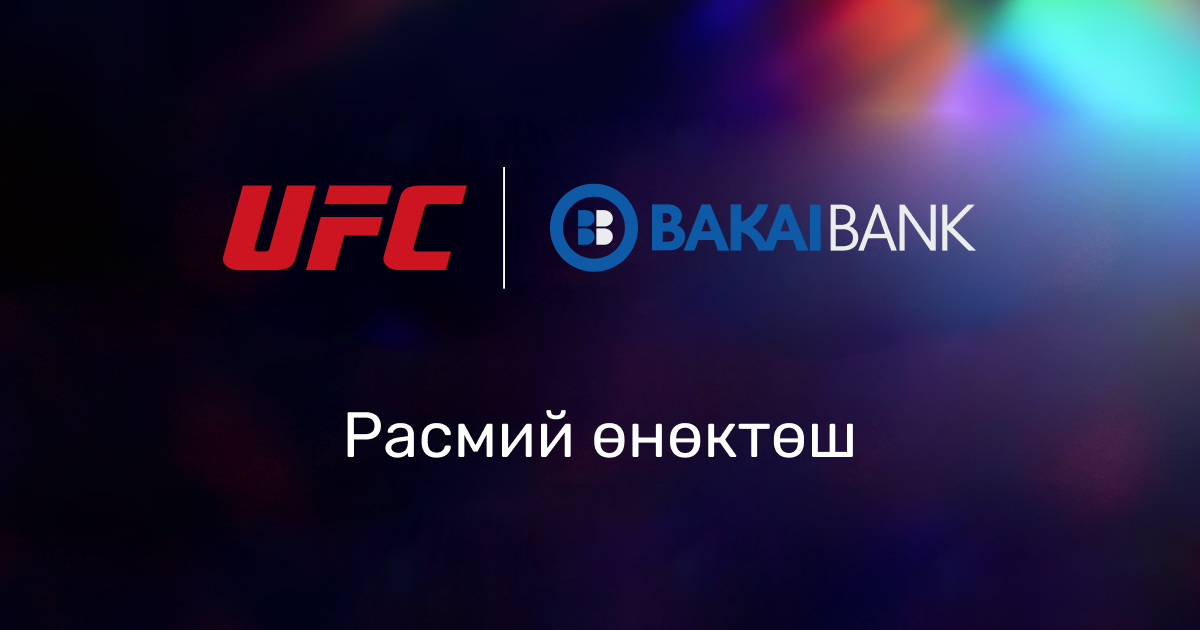Bakai Bank аралаш мушташ боюнча дүйнөдөгү эң ири уюм — UFC® менен болгон стратегиялык өнөктөштүгүн сыймыктануу менен жарыялайт. Бул келишимдин алкагында банк КМШ өлкөлөрүндө, тактап айтканда Армения, Азербайжан, Грузия, Казакстан, Кыргызстан, Тажикстан, Түркмөнстан жана Өзбекстанда UFCнин расмий банкы болуп калды.