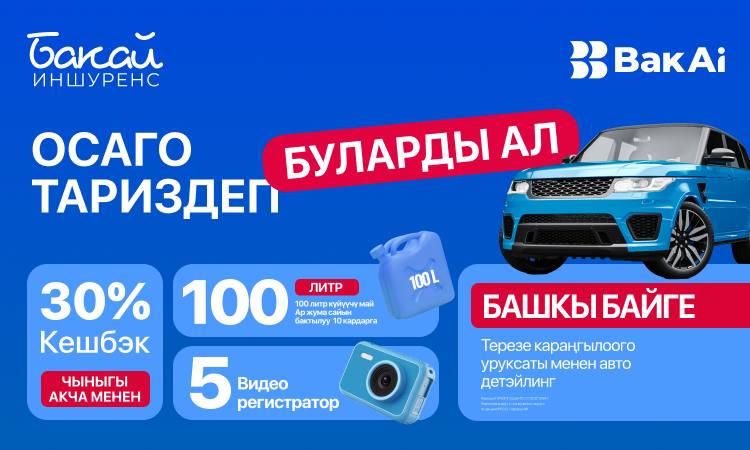 2025-жылдын 5-августунан 7-сентябрга чейин Bakai Bank’тын туунду компаниясы Бакай Иншуренс «ОСАГОнутаризде – май куюнун пайдалуу жолун танда!» аттуу акция өткөрүп жатат.BakAi мобилдик тиркемеси аркылуу же Бакай Иншуренскеңселеринде ОСАГО полисин каттаткан бардык кардарларбаалуу автосыйлыктар ойнотулчу лотереяга автоматтык түрдөкатышуучу болушат.Байге фонду: 5 000 литр АИ-95 үлгүсүндөгү күйүүчү май, 5 видеожазуучу жабдык жана башкы байге — терезе караңгылоогорасмий […]