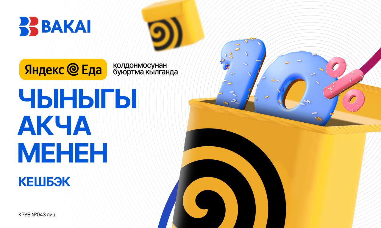 Эми сүйүктүү тамактарыңыз мурдагыдан да даамдуу жана пайдалуу болот. 2025-жылдын 1-сентябрынан 30-ноябрына чейин BAKAI’дын Visa карталарынын ээлери “Яндекс Еда” сервисинен буюртма бергенде 10% өлчөмүндө чыныгы акча менен кешбэк ала алышат.