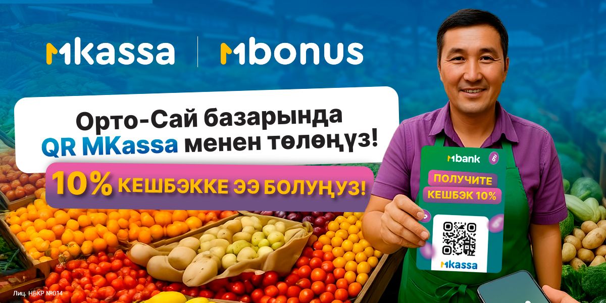 Сүйүктүү базарыңыздан соода кылып, үнөмдөөгө даярсызбы? Жакшы кабар!MKassa жана MBonus бардык пайда көргөндү сүйгөндөр үчүн акцияны узартты.Ар бир сатып алуудан 10% кешбэк бонус алыңыз!